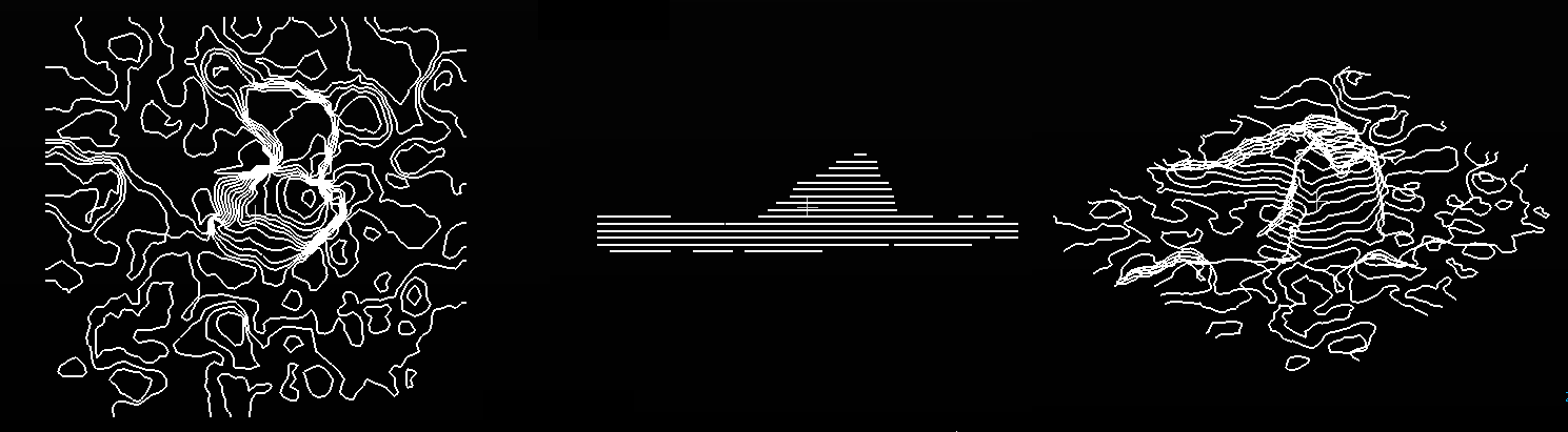 等高線データ・角度を変えて表示(真上・真横・斜め上)